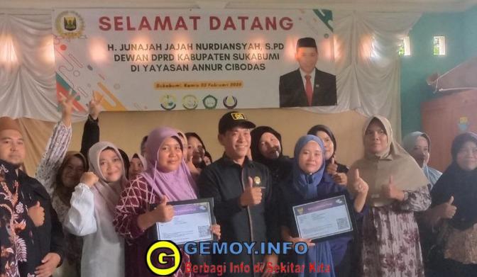 Dalam sambutannya, H. Jajah menuturkan : “Kami sebagai wakil rakyat sangat mendorong untuk kemajuan dunia pendidikan di Kabupaten Sukabumi khususnya Dapil Satu. Sehingga kesejahteraan guru dan siswa akan terus kami perjuangkan.”
