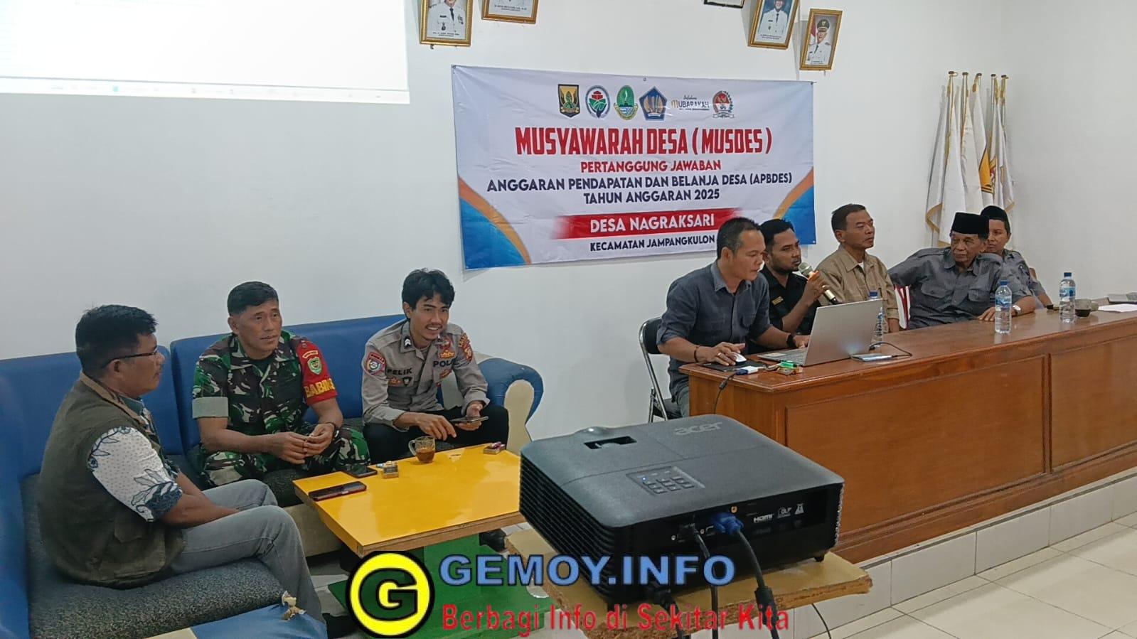 Gemoy.info,- Nagraksari, 15 Januari 2026 – Pemerintah Desa Nagraksari menggelar Musyawarah Desa (Musdes) terkait Anggaran Pendapatan dan Belanja Desa (APBDes) Tahun Anggaran (TA) 2025, sekaligus membahas pembangunan Koperasi Desa (KDMP). Kegiatan ini diselenggarakan di aula kantor desa setempat.