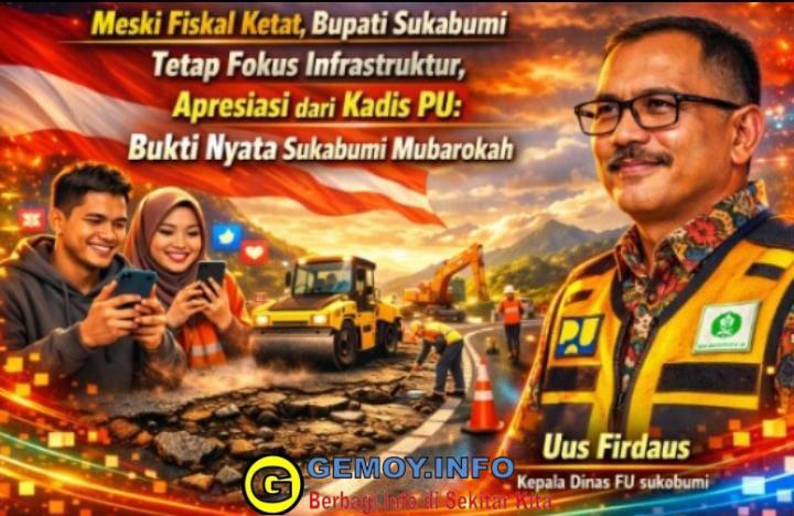 Gemoy.info, Sukabumi ,- Di tengah tekanan efisiensi anggaran, semangat membangun Sukabumi tetap menyala. Kepala Dinas Pekerjaan Umum (PU) Kabupaten Sukabumi, Uus Firdaus, menyampaikan apresiasi dan rasa syukur atas komitmen Bupati H. Asep Japar yang tetap memprioritaskan perbaikan infrastruktur jalan sebagai program utama.
