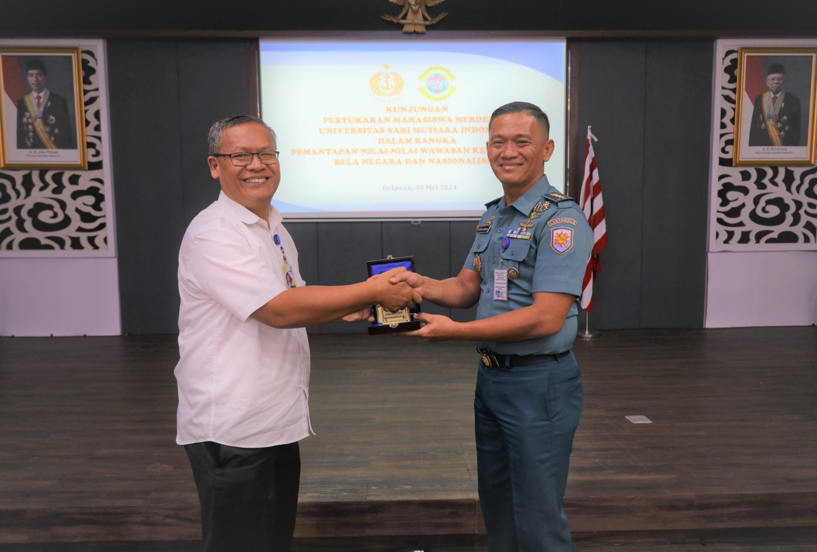 TNI AL, Belawan,- Komandan Pangkalan Utama TNI Angkatan Laut I (Danlantamal I) Brigjen TNI (Mar) Jasiman Purba, S.E., CHRMP., diwakili Aspotmar Danlantamal I Kolonel Marinir Hendra Zarnadi, memberikan pembekalan tentang wawasan kebangsaan dan bela negara kepada Program Pertukaran Mahasiswa Merdeka (PMM)-4, bertempat di Gedung Yos Soedarso Mako Lantamal I, Jalan Serma Hanafiah No.01, Belawan, Sumatera Utara, Kamis (30/5/2024).