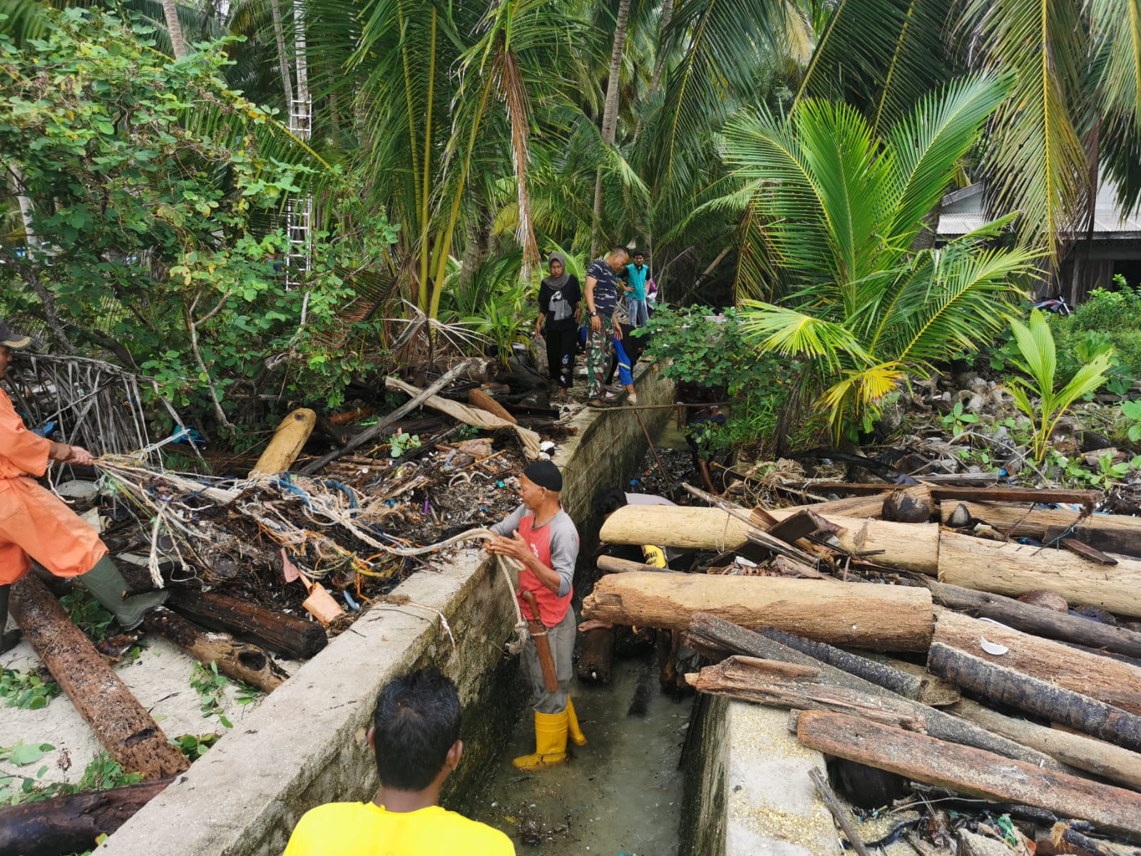 “Lokasi pembersihan berada di Kelurahan Sabang Barat. Parit utamanya tersumbat akibat kayu-kayu yang terbawa pasang tinggi dan cuaca ekstrem beberapa hari terakhir,” kata Agus.