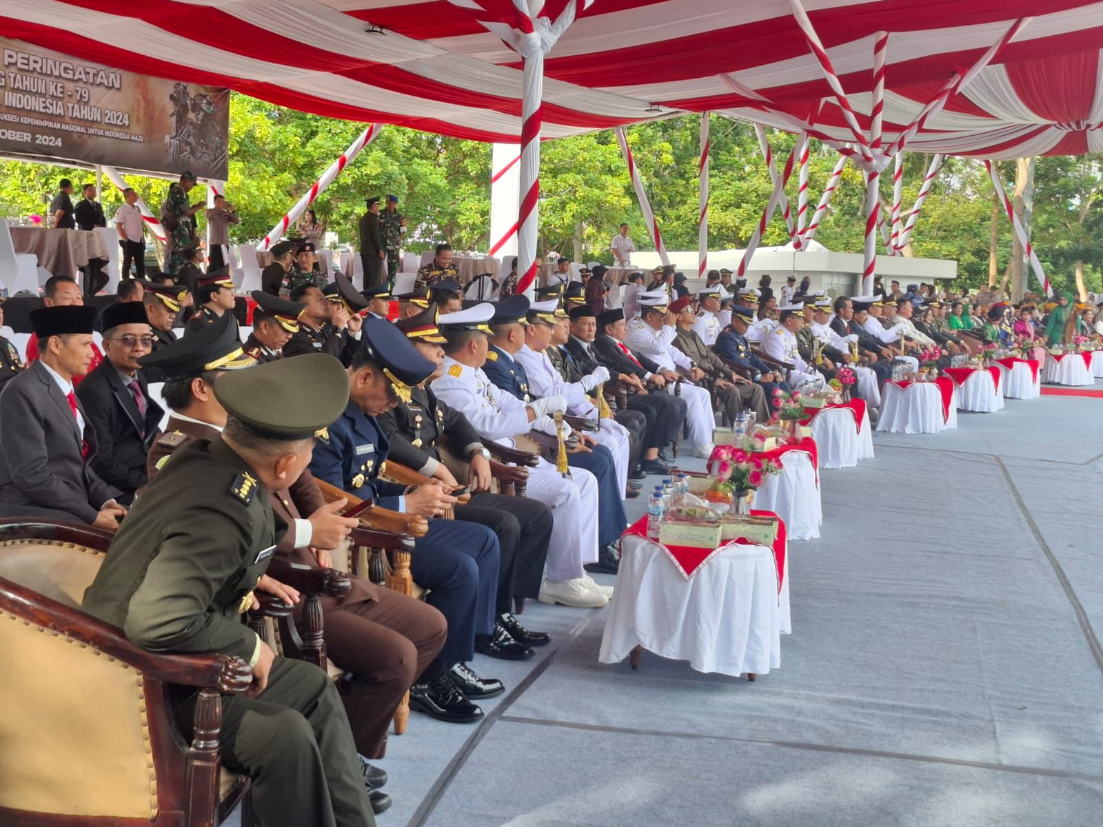 TNI AL, Bintan,- Komandan Lanal Bintan Kolonel Laut (P) Eko Agus Susanto, S.E., M.M., hadiri Upacara HUT TNI Ke-79 Tahun 2024, yang dilaksanakan di Lapangan Engku Putri Kota Batam, Sabtu (05/10/2024).
