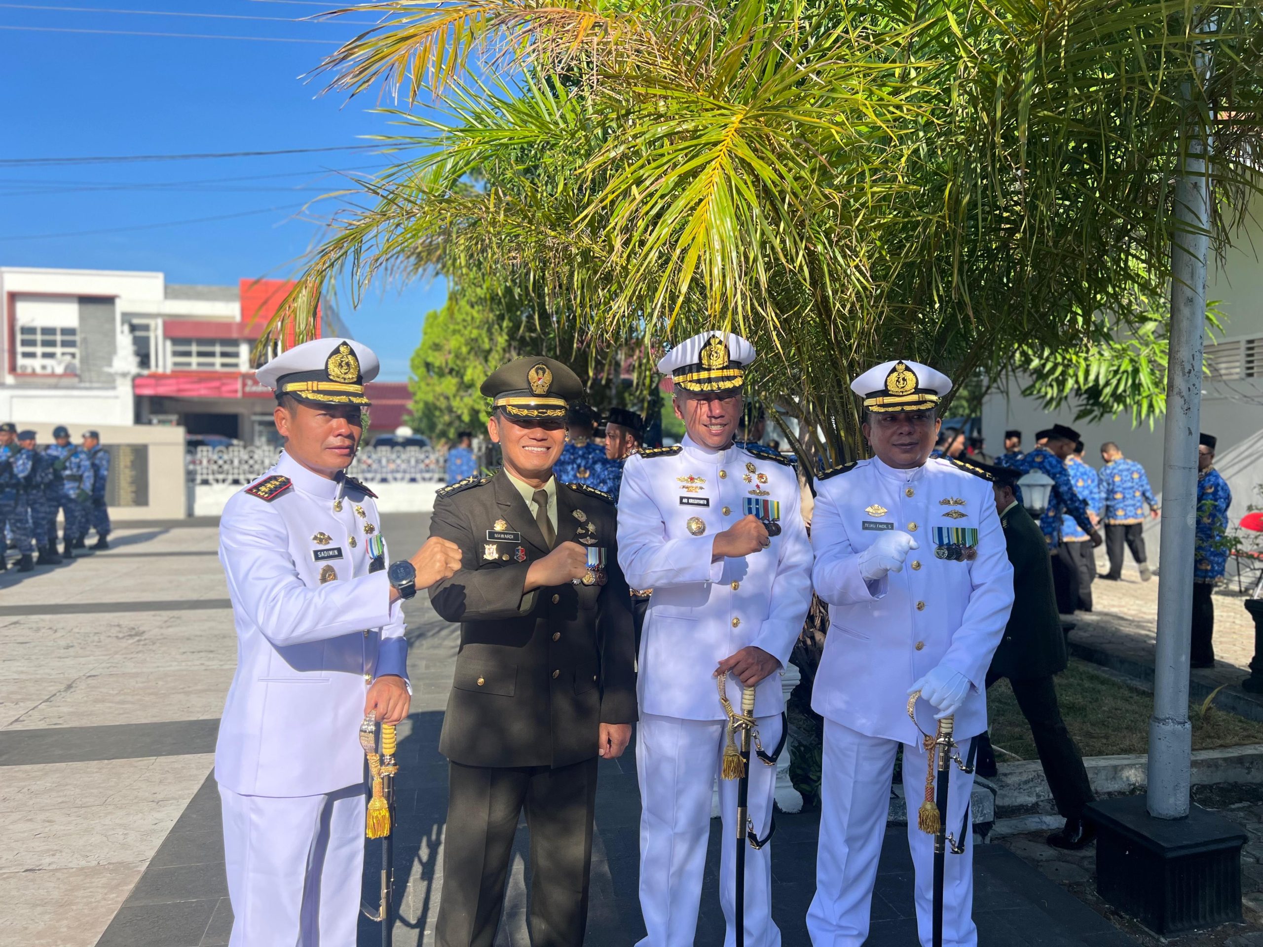 TNI AL, Sabang,- Komandan Pangkalan TNI AL (Danlanal) Sabang Kolonel Laut (P) Sadimin, S.E., M.Tr. Opsla., didampingi Ketua Cabang 3 Daerah Kodaeral I Gabungan Jalasenastri Koarmada RI Ny. Widya Sadimin menghadiri Upacara Ziarah Nasional dalam rangka memperingati Hari Ulang Tahun (HUT) Ke-80 Tentara Nasional Indonesia (TNI) dengan tema “TNI Prima, TNI Rakyat, Indonesia Maju” yang berlangsung di Taman Makam Pahlawan, Gampong Peuniti, Kecamatan Baiturrahman, Kota Banda Aceh, Jum’at (3/10/2025).