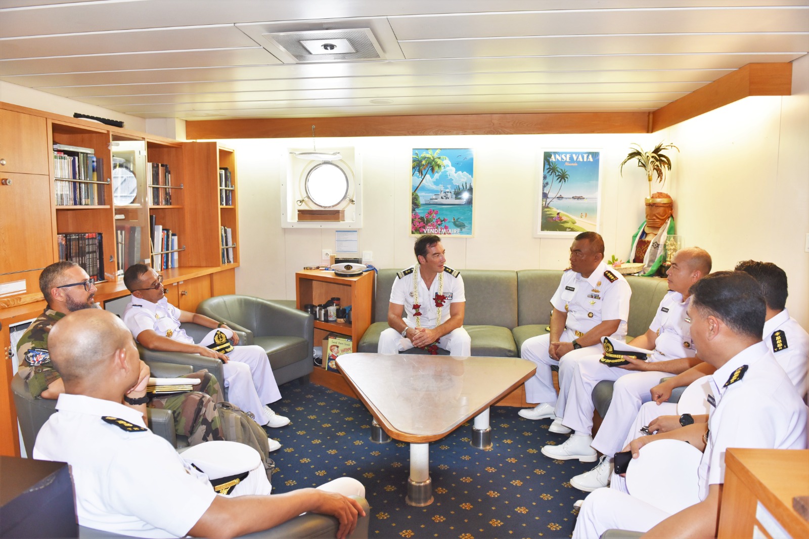 Saya ingin menyampaikan terima kasih dan sambutan hangat kepada Komandan FNS Vendemiare F 734 Komandan Sebastian Droulle yang telah meluangkan waktu dalam perjalanan panjang untuk datang ke Belawan, Indonesia dalam kunjungan persahabatan. Kunjungan persahabatan ini sangat penting untuk meningkatkan persaudaraan Angkatan Laut kedua negara, dan juga dapat meningkatkan hubungan Bilateral antara pemerintah Indonesia dan pemerintah Perancis.
