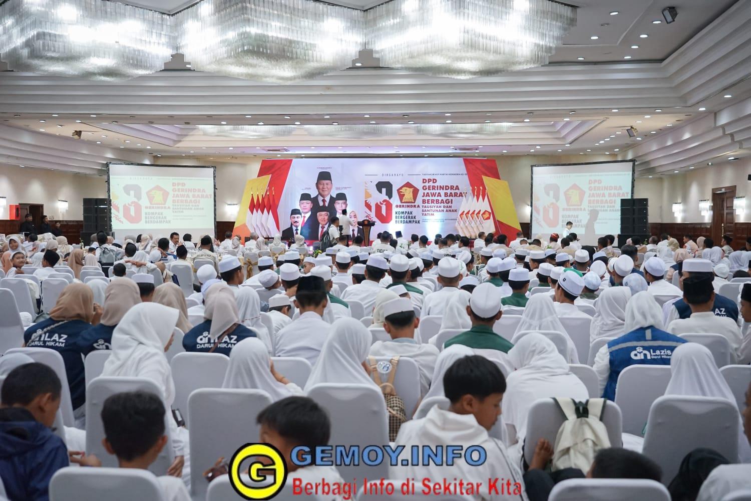 GemoyInfo, Bandung — Dewan Pimpinan Daerah (DPD) Partai Gerindra Jawa Barat memperingati Hari Ulang Tahun (HUT) ke-18 Partai Gerindra melalui kegiatan bertajuk “DPD Gerindra Jawa Barat Berbagi: Tausiyah dan Santunan Anak Yatim” di Hotel Horison, Kota Bandung, Kamis, 5 Februari 2026. Peringatan HUT Gerindra kali ini mengusung tema “Kompak, Bergerak, Berdampak,” yang menekankan konsolidasi internal sekaligus kehadiran sosial partai di tengah masyarakat.
