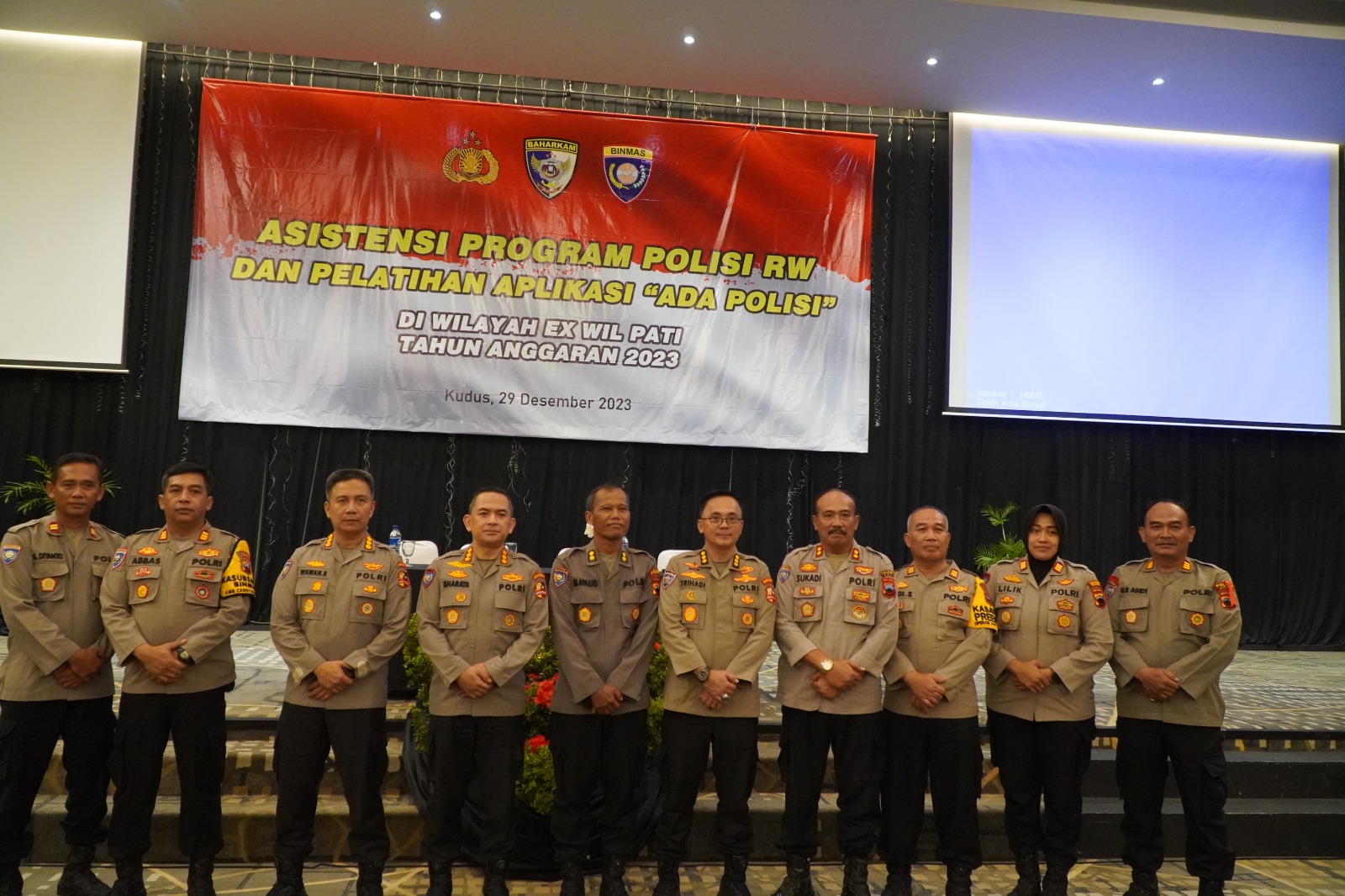 Gemoy.info, Kudus – Dengan Tema Roadshow Asistensi Program Polisi RW dan Pelatihan Aplikasi “Ada Polisi” tahun anggaran 2023 digelar oleh Korbinmas Baharkam Mabes Polri di Ballroom Hotel Griptha Kudus, Jumat (29/12/2023).