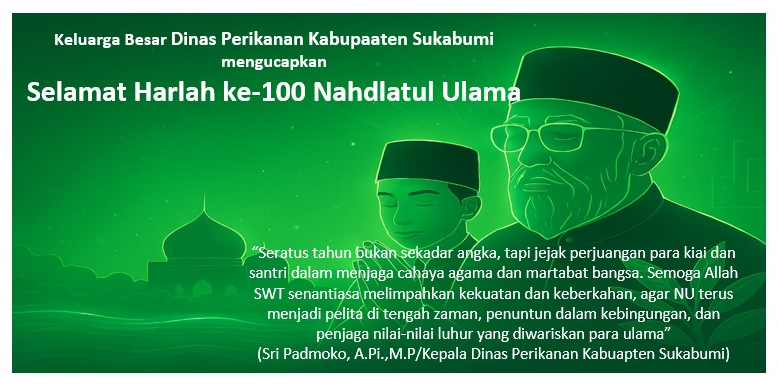 Keluarga Besar Dinas Perikanan Kabupaten Sukabumi mengucapkan terima kasih kepada seluruh tokoh NU, para kiai, santri, dan warga Nahdliyin yang telah menjadi cahaya dalam gelap, penuntun dalam bingung, dan penjaga dalam sunyi. Semoga NU terus tumbuh menjadi pelita zaman, dari pesantren hingga pesisir, dari masjid hingga pasar, dari doa hingga aksi nyata.