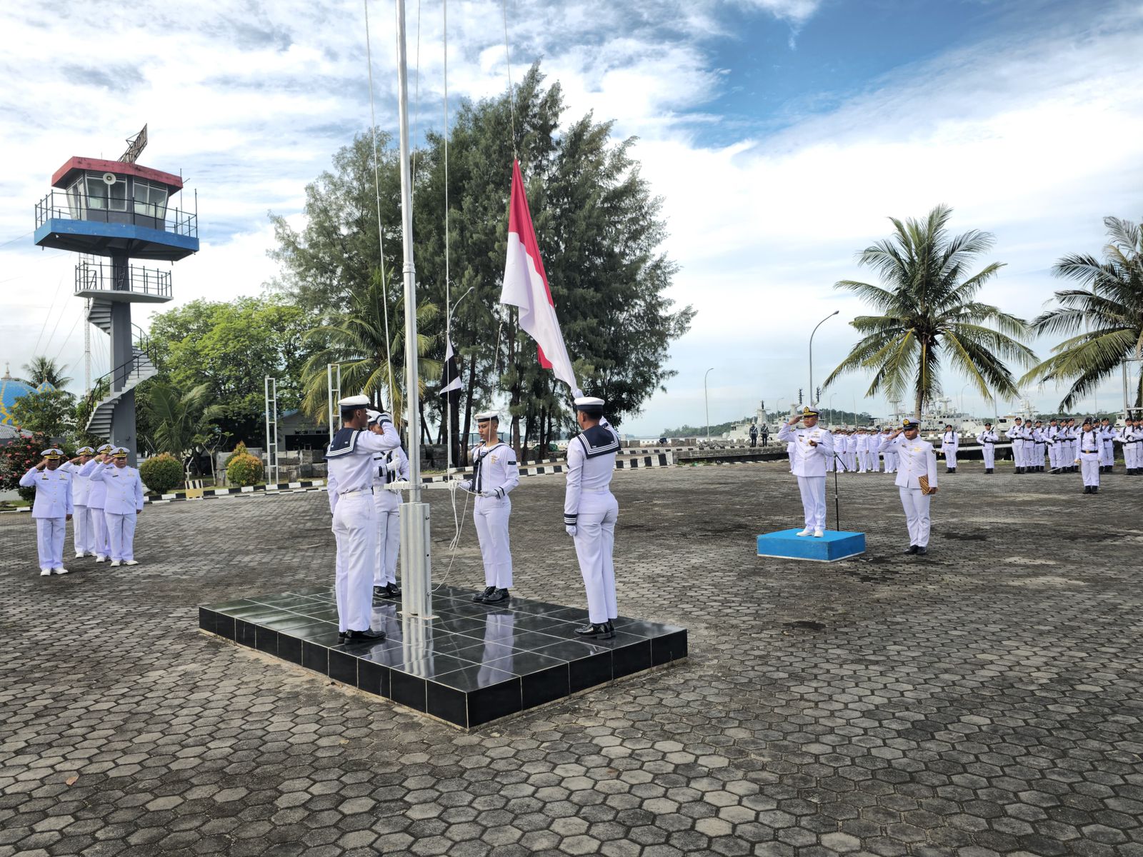Pelaksanaan upacara tersebut dipimpin oleh Komandan Lanal Bintan Kolonel Laut (P) Dr. Eko Agus Susanto, S.E., M.M., sebagai Unspektut Upacara, dengan Komandan Upacara Kapten Laut (P) Imin Yusnadi yang sehari-hari menjabat sebagai Komandan Posal Berakit. Kegiatan upacara diikuti oleh Perwira, Bintara, Tamtama dan ASN dari gabungan Prajurit Lanal Bintan, Prajurit Satran Koarmada I, Prajurit Satkat Koarmada I, Prajurit Satdik 1 Kodiklatal, dan Prajurit Fasharkan Mentigi.