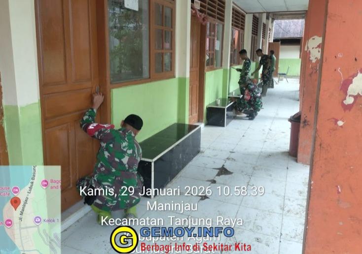 Salah satu lokasi yang menjadi fokus kegiatan pembersihan kali ini adalah SMP Negeri 1 Maninjau, Kecamatan Tanjung Raya, Kabupaten Agam. Di sekolah ini, prajurit TNI bersama warga membersihkan sisa material pascabencana sekaligus memperbaiki kerusakan ringan sejumlah fasilitas sekolah.