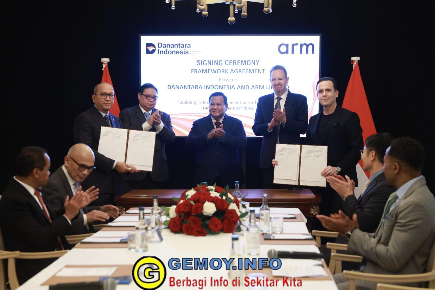 gemoy.info,- London — Presiden Republik Indonesia Prabowo Subianto menyaksikan penandatanganan kerangka kerja antara Danantara dan Arm Limited di London, Inggris. Kerangka kerja ini di antaranya memperkuat visi Indonesia dalam penguasaan teknologi semikonduktor atau chip.