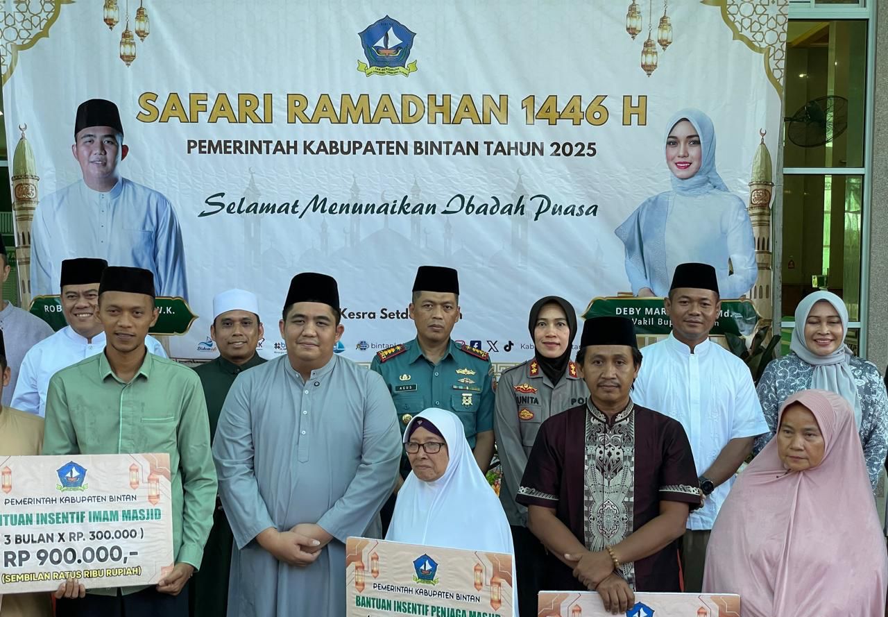 Turut mengikuti kegiatan Safari Ramadhan antara lain, Bupati Bintan Roby Kurniawan, S.P. W.K., Sekda Bintan Rony Kartika, S.STP., M.M., Asisten Pemerintahan dan Kesejahteraan Rakyat Wan Rudi Iskandar, M.M., Wakil Ketua 1 DPRD Bintan Eriyanti, S.H., M.H., beserta Anggota DPRD Bintan, Staf Ahli Bidang Ekonomi Aupa Samake, Danlanal Bintan Kolonel Laut (P) Dr. Eko Agus Susanto, S.E., M.M., Kafasharkan Mentigi, Kolonel Laut (T) Agung Prabowo, S.T., CHRMP., Dansatrad 213/TPI Letkol Lek Oki Hartanto, S.T., Kapolres Bintan AKBP Yunita Stevani, S.I.K., M.Si., Dandim 0315/TPI diwakili Danramil 03 Bintan Utara Kapten Inf Maswendra, Kepala Kemenag Bintan H. Abu Sufyan, S.Ag., Kepala MUI Bintan K.H. Ali Ahmadi, Camat Bintan Utara, Helmy Setyawati, S.E., M.M., Camat Seri Kuala Lobam Nona Yani M. Abas Manupassa, S.Ip., Ketua Masjid Sekelurahan Bintan, Kepala OPD Bintan, Tokoh Masyarakat, Tokoh Agama, Tokoh Pemuda, dan masyarakat.