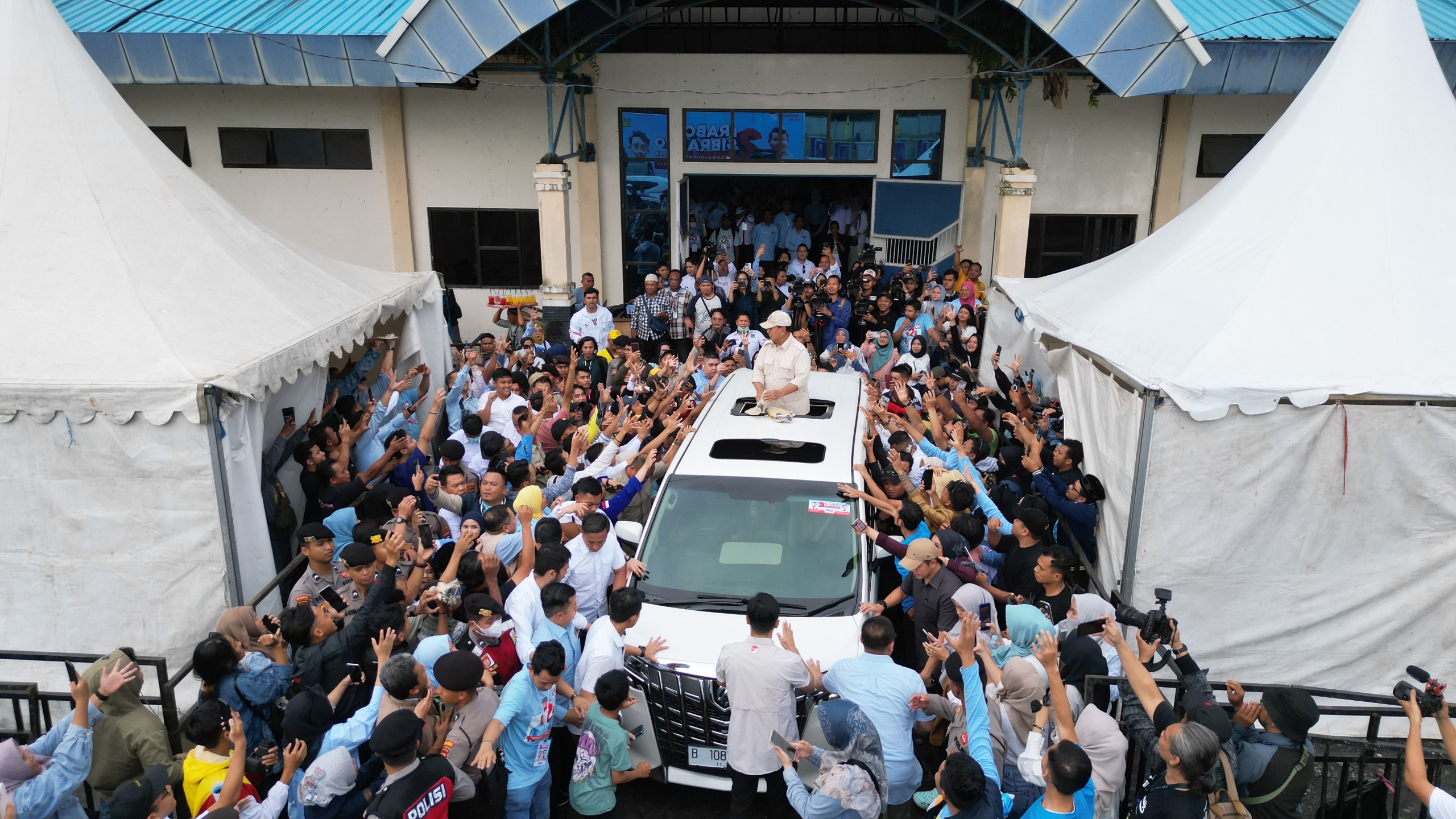Candaan Prabowo makin mencairkan suasana. Keriuhan terjadi sepanjang acara. Prabowo pun mengungkap rasa terima kasihnya kepada warga Banjarbaru.