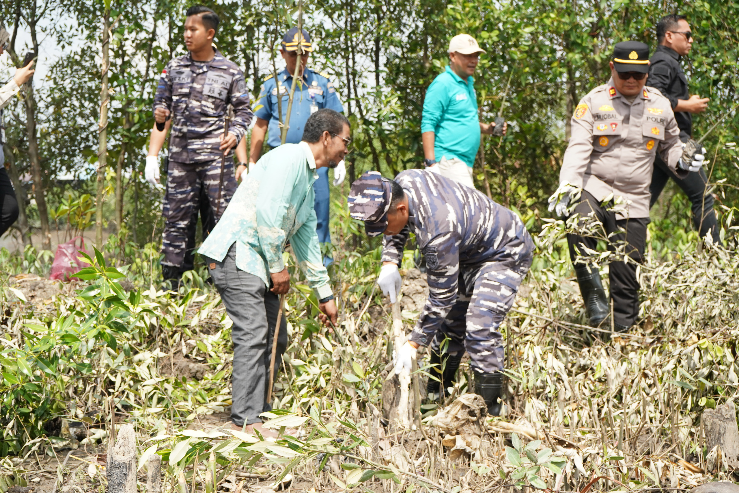 Dengan penuh semangat, Danlanal Dumai bersama jajaran PT. Pertamina Patra Niaga dan para peserta yang hadir bahu membahu menanam bibit bakau ditepian sungai dan kawasan pesisir pantai Kelurahan Rimba Sekampung. Kehadiran Danlanal Dumai menjadi simbol dukungan TNI AL terhadap program pelestarian lingkungan, khususnya di wilayah pesisir dan perairan.