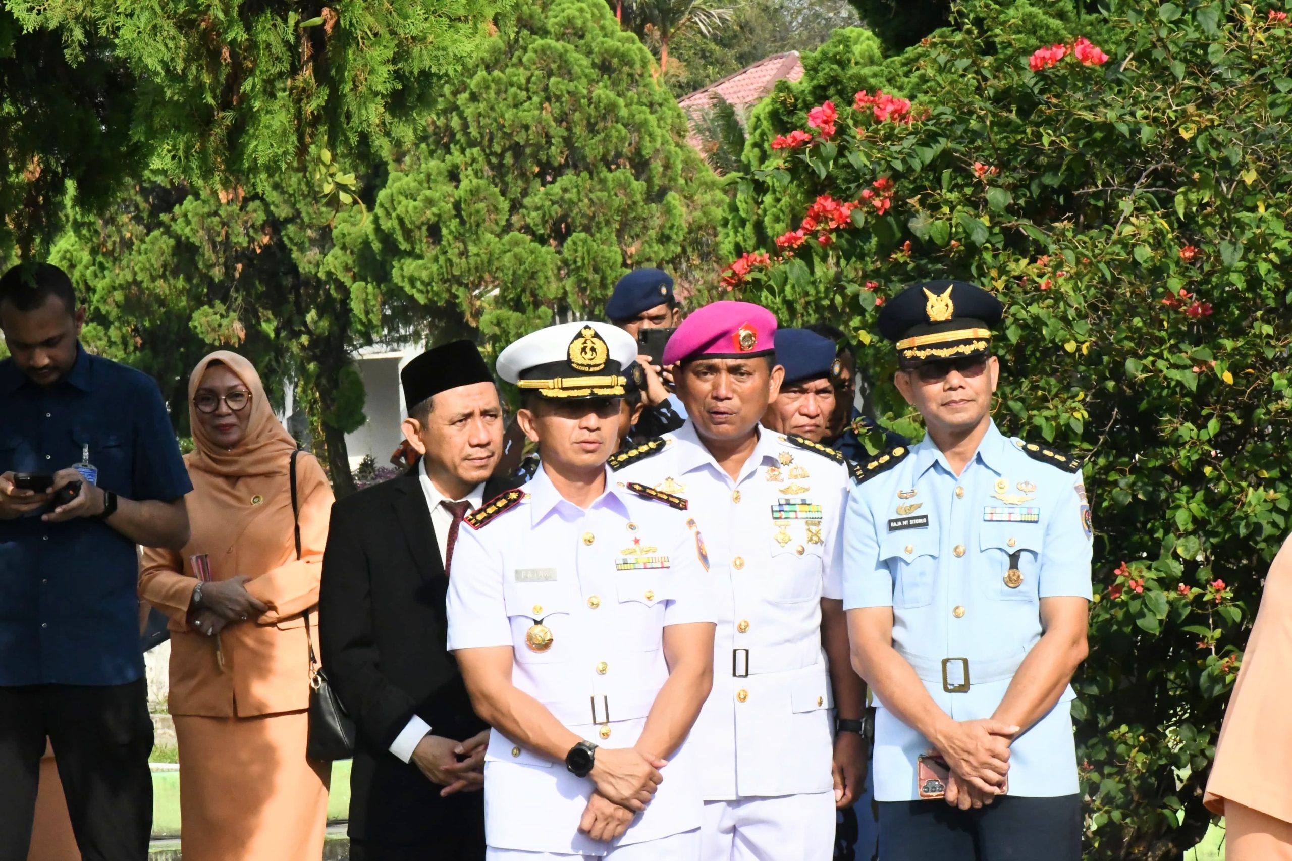TNI AL, Belawan,- Komandan Pangkalan Utama TNI Angkatan Laut I (Danlantamal I) Brigjen TNI (Mar) Jasiman Purba, S.E., CHMRP., diwakili Wadan Lantamal I Kolonel Laut (P) Fajar Tri Rohadi, S.E., menghadiri Ziarah Rombongan dalam rangka peringatan hari jadi Ke-77 Provinsi Sumut, di Taman Makam Pahlawan Bukit Barisan, Jalan Sisimangaraja Medan, Selasa (15/4/2025).
