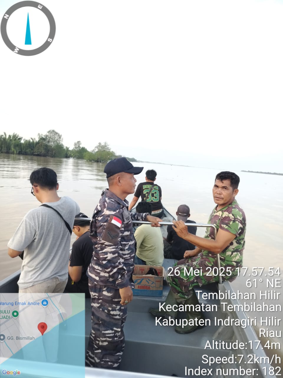 TNI AL, Dumai,- Setelah berjibaku selama dua hari melakukan pencarian di Perairan Batang Kuantan, akhirnya Personel Pos TNI Angkatan Laut Tanjung Datuk bersama Tim SAR Gabungan berhasil menemukan mayat korban kecelakaab laut Sdr. Abid yang merupakan anak dari Sertu Miskal, Babinsa Tembilahan Kota. Mayat korban ditemukan sekitar pukul 20.00 WIB di daerah Parit 17 Perairan Batang Kuantan, Tembilahan, Kabupaten Indragiri Hilir, Senin (26/5/2025).