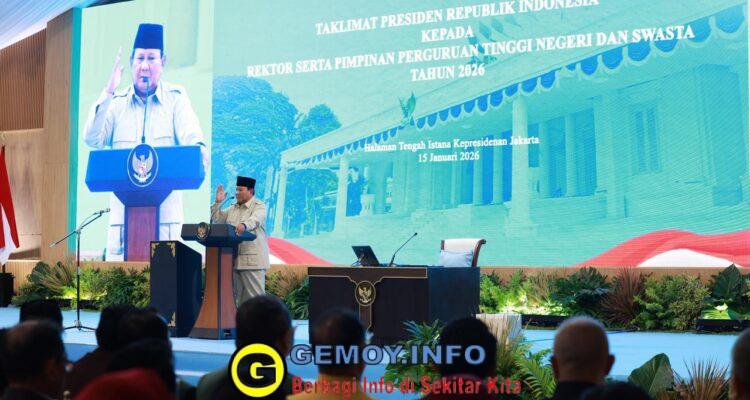 Prabowo Dialog Prabowo Dialog dengan 1.100 Rektor hingga Guru Besar di Istana Negara PEMERINTAHAN|Januari 15, 2026oleh admin Jakarta – Presiden RI Prabowo hari ini, Kamis (15/1) menggelar pertemuan dialog