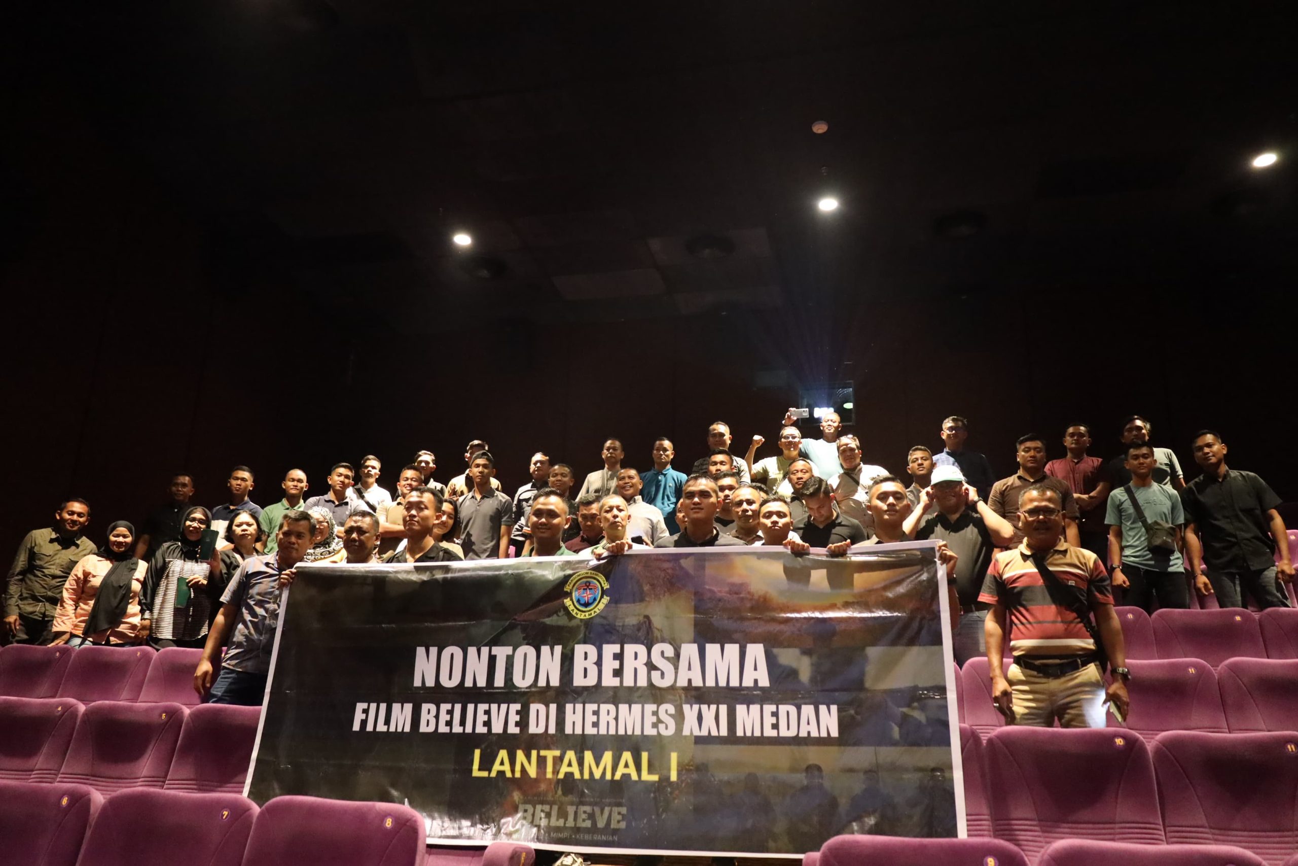 TNI AL, Belawan,- Pangkalan Utama TNI Angkatan Laut I (Lantamal I) melaksanakan kegiatan nonton bareng (Nobar) Film “Belive : Takdir, Mimpi dan Keberanian, bertempat di Hermes XXI Bioskop, Jalan Polonia, Kecamatan Medan Polonia, Kota Medan, Sumatera Utara, Senin (14/07/2025).