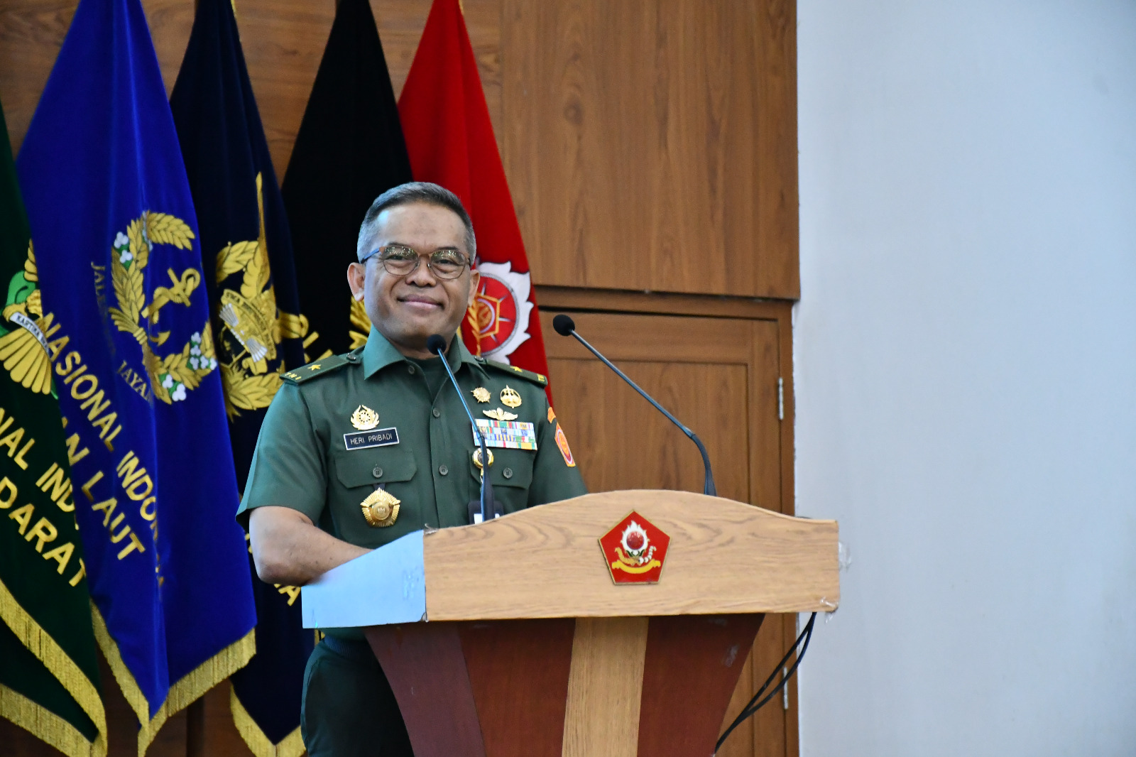 PENHUMAS-SESKO TNI,- Komandan Sesko TNI Marsdya TNI Arif Widianto, M.B.A., M.Tr. (Han)., CHRMP., diwakili Wadan Sesko TNI Mayjen TNI Budi Eko Mulyono, S.Sos., M.M., mengikuti Diskusi Panel MK Manajemen Pertanahan Negara Dikreg LII Sesko TNI TA 2024 dengan tema “Sinergitas Pemda dan TNI Dalam Menata Wilayah Pertahanan Guna Mendukung Sistem Pertahanan Negara”, yang dipimpin oleh moderator Pasis Dikreg LII Sesko TNI Kolonel Tek Agustinus Subagyo, bertempat di Gedung Graha Widya Adibarata Sesko TNI, Bandung, Senin (27/5/2024).